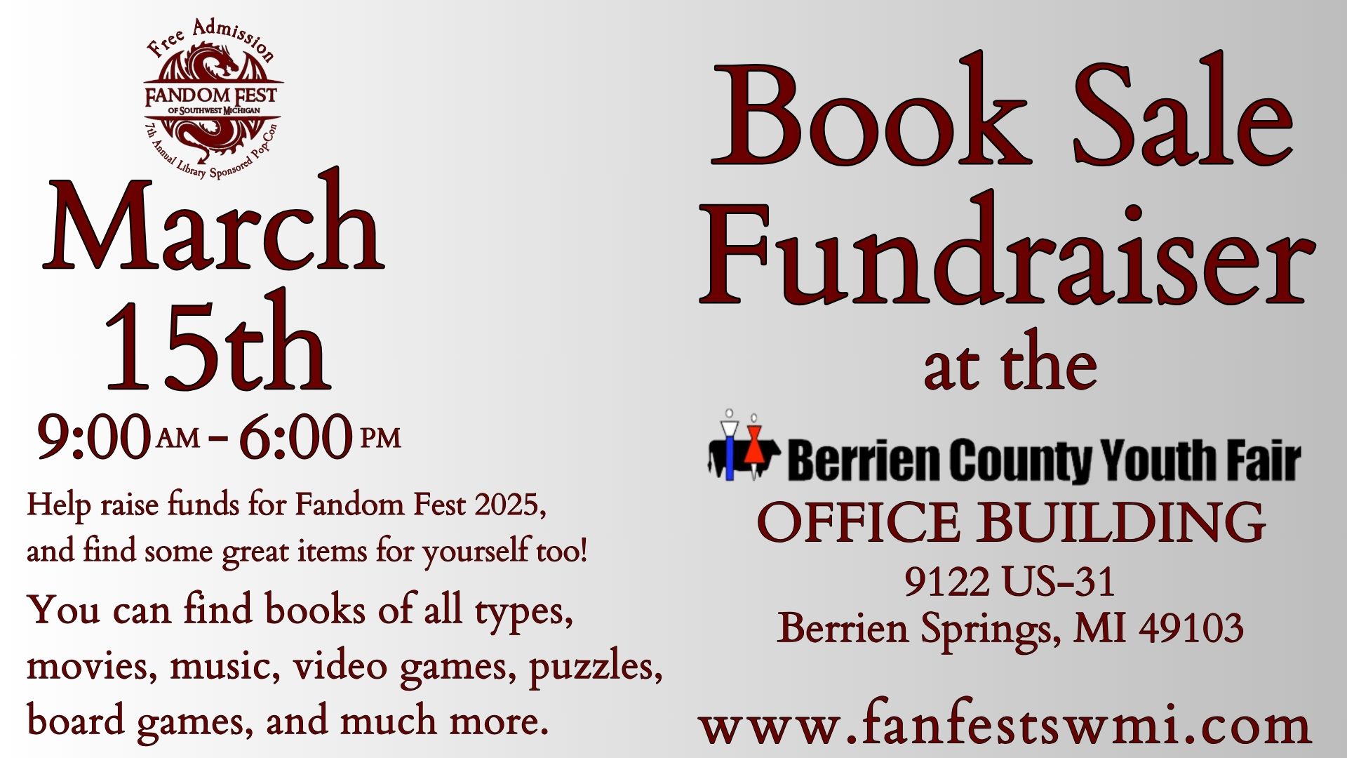 Book sale fundraiser smart TV.jpg https://www.galienpl.org/book-sale-fundraiser-smart-tv.jpg/view https://www.galienpl.org/book-sale-fundraiser-smart-tv.jpg/@@images/image-1200-65fccce8886aab8b92bc17ef5ba34aaa.jpeg Book sale fundraiser smart TV.jpg Book sale fundraiser smart TV.jpg image/jpeg Type image/jpeg Dimension Dimension 1920x1080 Size File size 236.8 KB Download View full-size image